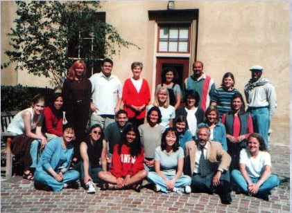Bottom row: Jackie Wong (WestEd), Andrea Main (Monarch Academy, ASPIRE Charter School in Oakland), David Fetterman (Director), Jennifer Su (Sociometrics), and Melissa Fischer (Center for Primary Care and Outcomes Research at Stanford, Stanford Hospital). Melissa is holding Baby Madeleine (one of the two youngest members of our program ever - May 23, 2001 at approximately 10:25 am).