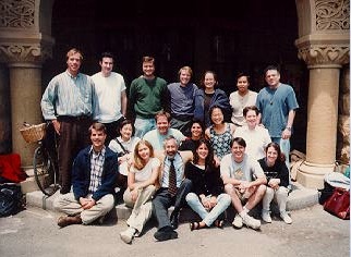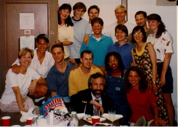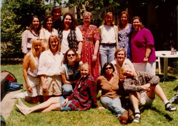 Bottom row, left to right: Briel Schwartz - now Schmitz (University Child Development School), Laurie Somers (Westat, formerly from the Council of Chief State School Officers), Rayme Waters (Jossey-Bass, formerly Apple Computers), Cathy Sanford (Director - Summerbridge), Viki Young (SRI International), Margi Power (ProNet, formerly Learning Company - educational software company), and Charlie Schlegel (graduate school, formerly teaching - New Orleans)